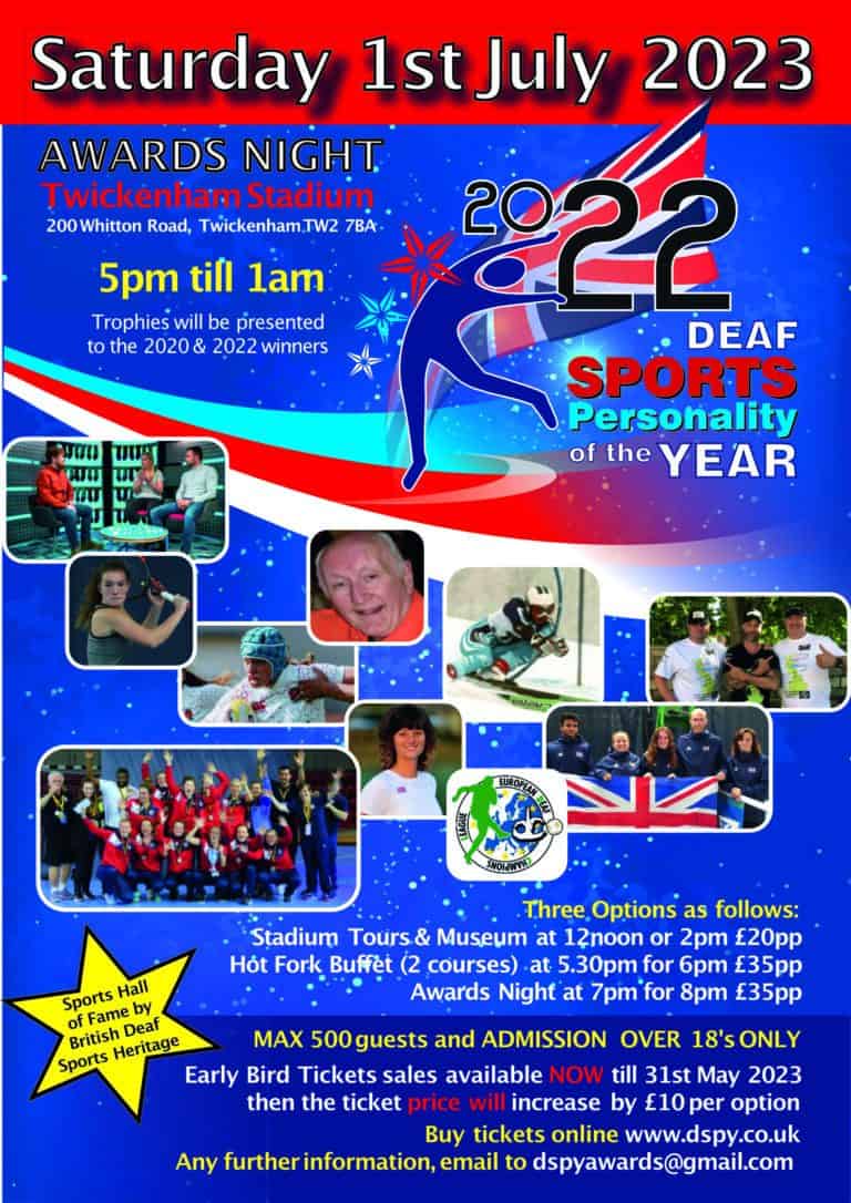 DSPY are delighted with ticket sales to date, and have sold over 100 tickets in the last four weeks for our 7th biennial awards on Saturday 1st July 2023 at Twickenham Rugby Stadium, in Twickenham, south-west London (England). Just a friendly reminder that our ticket prices will go up from 1st June 2023.